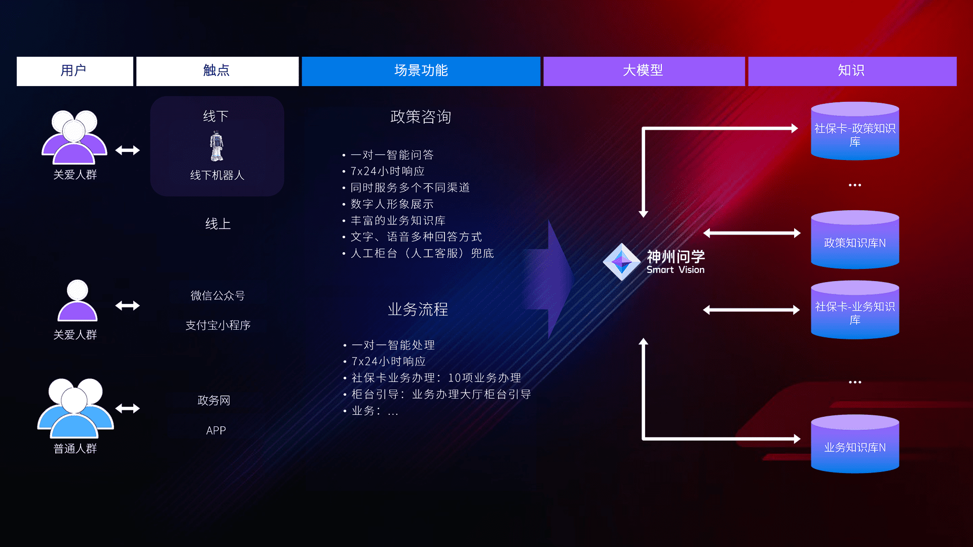 • 线上线下全覆盖:线上提供微信公众号、、、支付宝小程序、、、、政务网、、app多种渠道,,,与线下机器人形成完整服务体系。。。。